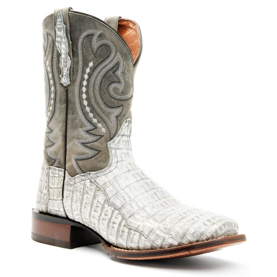 Best Sale ๐ Dan Post Men’s Charcoal Exotic Caiman Belly Western ๐ฅพ Boots – Broad Square Toe Cream ๐
