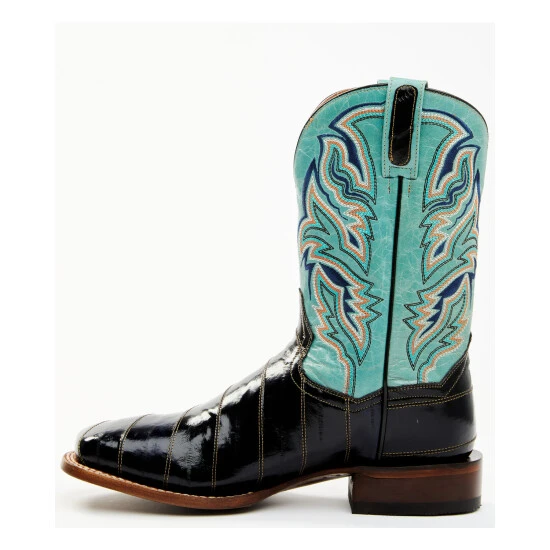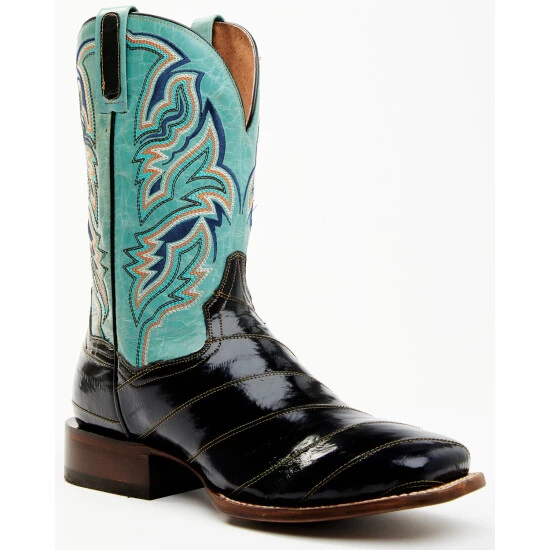 Wholesale 😉 Dan Post Men’s Eel Exotic Blue Western 🥾 Boots – Broad Square Toe Black/blue 💯